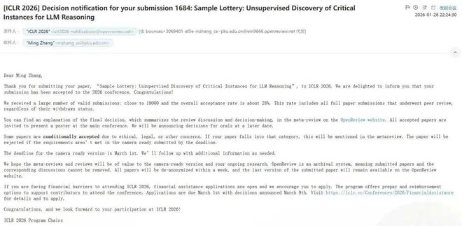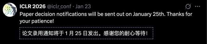 终于,ICLR 2026 带来了一线希望,录用通知从 1 月 25 日发出——