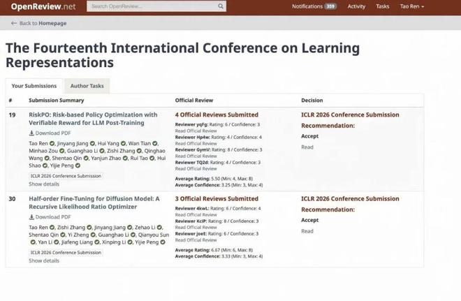 北大任韬,ICLR 2026 投中两篇论文,聚焦于 LLM 和 Diffusion 的后训练强化学习算法,从风险度量和随机梯度估计的角度给出了一些不同的看法。