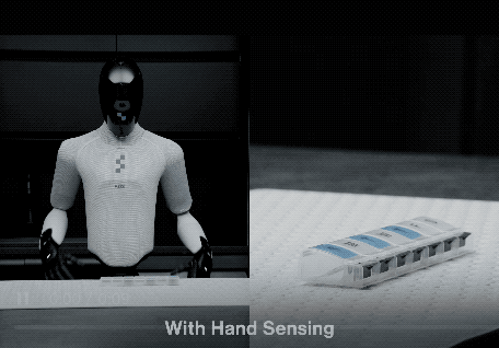 头部的全景摄像头、掌心的近距离相机、指尖的触觉传感器,全身的关节运动状态全被喂进神经网络。