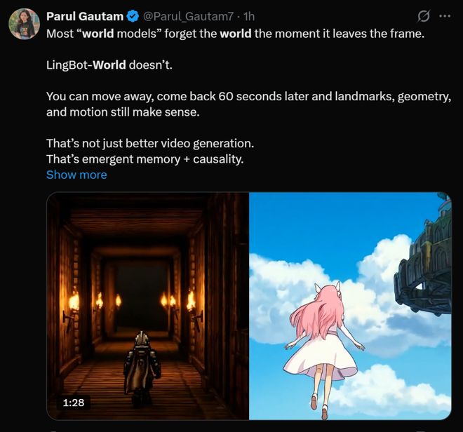 更耐人寻味的是,LingBot-World 在X上发布后,Genie 甚至宣布将于近期开源。
