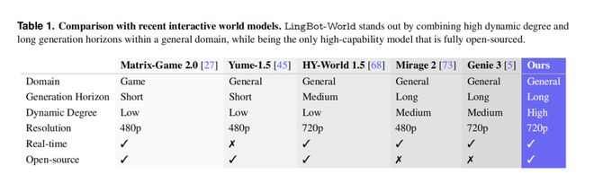 在可交互性、生成质量、物理一致性和生成时长上,LingBot-World 都能全面对标 Genie 3。