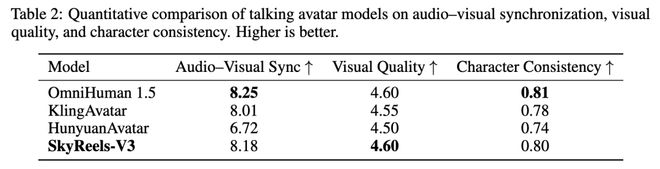 在音频驱动虚拟形象生成领域,SkyReels-V3 同样表现亮眼。