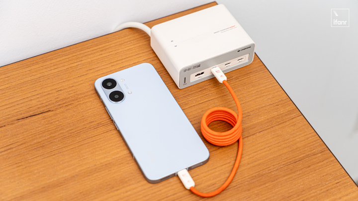 支持 100W PPS 快充让它少了充电器选择的压力,多设备用户配合高性能多口充电器使用更加省心。内置的 27W 反向充电不仅能支持功耗稍大一点的散热风扇,给 iPhone 或其他 Android 手机补电也有一个能吃满他家通用快充的效率。