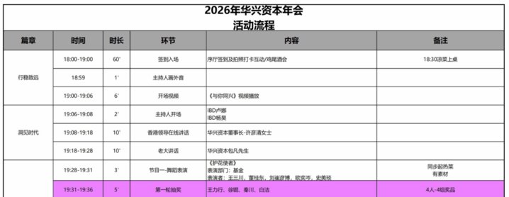 创投家独家获悉,在今晚华兴资本 2026 年年会的活动流程里,关键角色的呈现方式悄然释放着组织进化的信号。