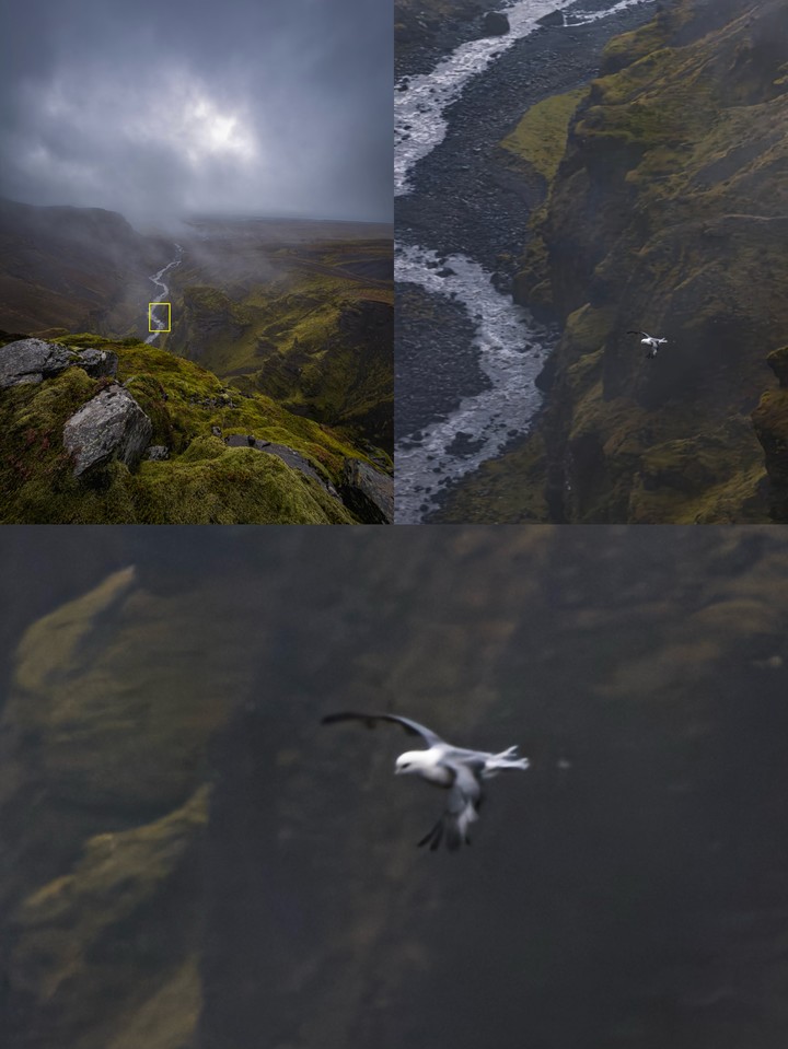 接下来,让我们说回由 4 倍镜头中心部分 1200 万像素裁切而来的画面。