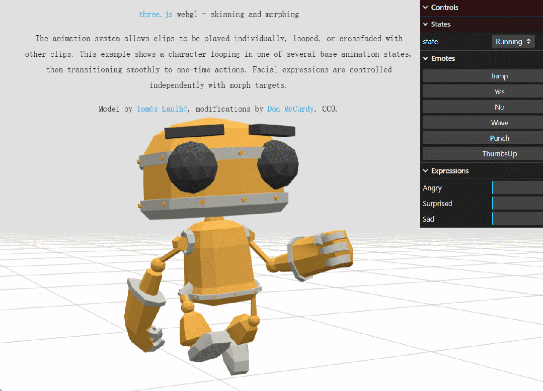 在官网示例里,同一个图形界面你可以选择不同的状态如跑、跳。