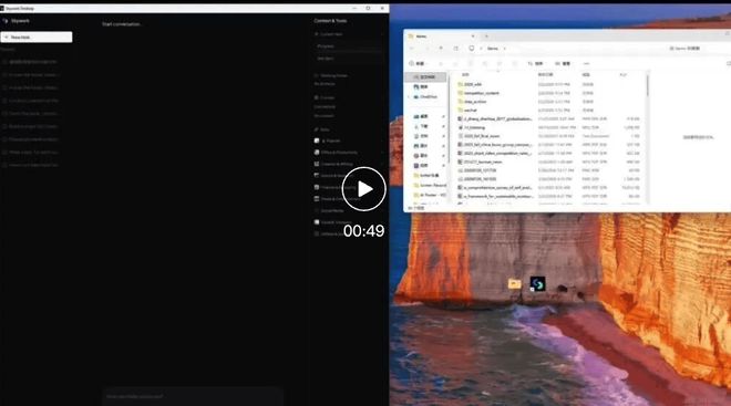 Skywork 原生支持 Windows 系统,无需繁琐的迁移或适配,即可对海量本地历史文件和复杂项目场景展开自动化处理。这种高度的兼容性打通了个人 Agent 进入真实办公场景的「最后一公里」。