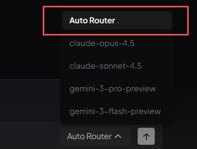 ▲模型选择时可以选择智能路由模式或其他指定模型