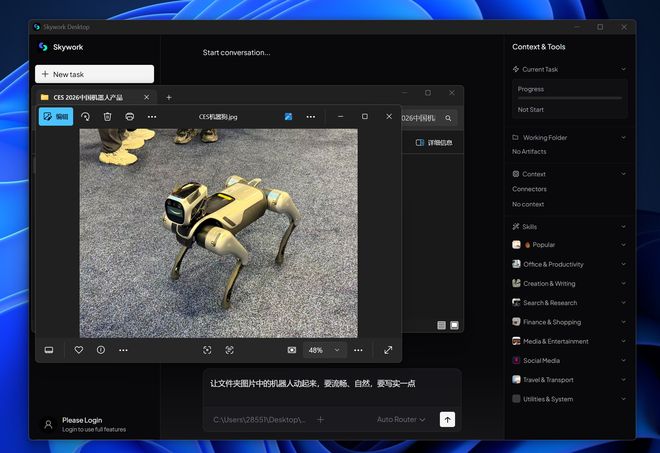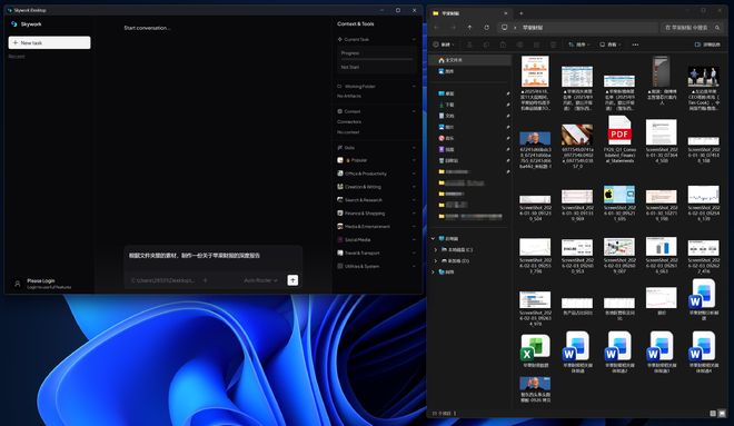 Skywork 桌面版推出,让 Windows 生态中有了更出色的桌面 Agent 超级助理,从复杂文件处理到多模态图文视频输出,基于智能路由能力、出色的生态支撑,其在变革生产力方面展现出巨大潜力,也成为昆仑天工在 AI Agent 领域的一次重要布局。