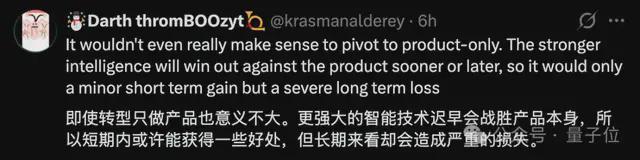 诚然,Mark Chen 也表示,OpenAI 的确是一个产品化公司,因为产品化能带来更大的算力、更丰富的反馈以及更广泛的研究空间。