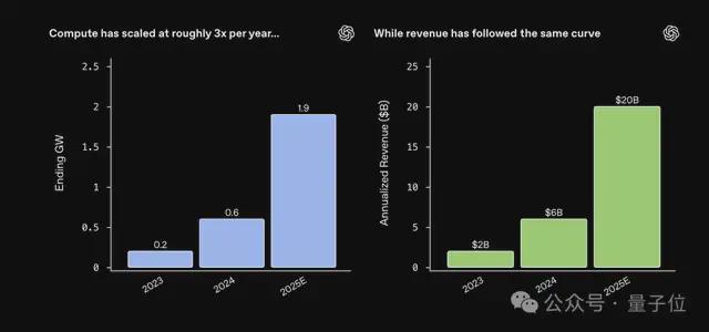 前几天 OpenAI 就曾发布公告,明确指出算力和收入之间存在 Scaling Law,就是烧得越多,赚得越多。