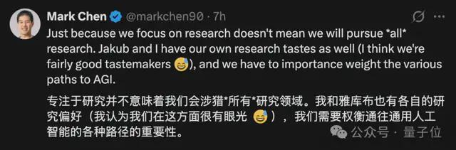 此外,他强调自己和 Jakub Pachocki 对研究的优先级有自己的判断,不会去追逐所有可能的研究路线,只会重点投入某些方向。