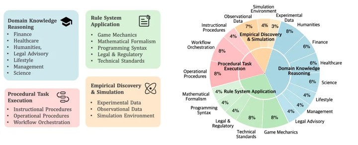 CL-bench 的目标正是衡量模型能否从提供的上下文中学习全新知识并正确应用。基准包含 500 个复杂上下文、1899 个任务和 31607 个验证标准,覆盖四类典型场景:领域知识推理、规则系统应用、程序性任务执行以及经验发现与模拟。