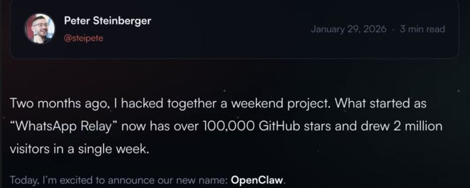 从最初的 Clawdbot,到 Moltbot,再到最新的名字:OpenClaw。