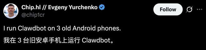 他在自己的 3 部旧安卓手机上运行 Clawdbot。
