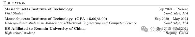 他高一拿下 IMO 金牌,高三拿下 IOI 金牌,高中毕业后,他本科与博士均就读于 MIT。