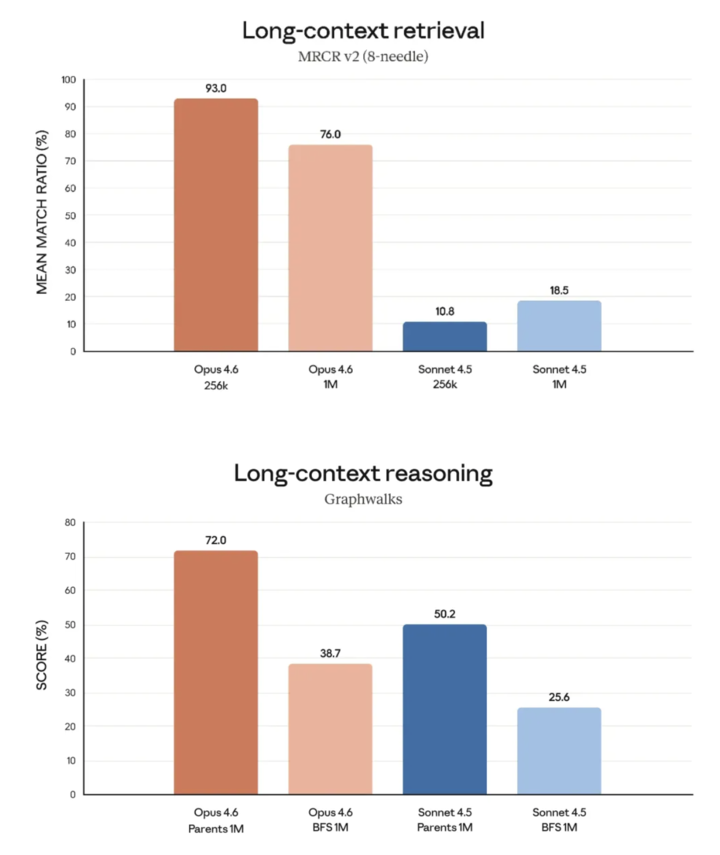 这是 Claude Opus 4.6 首次引入了真正可用的 1M 上下文窗口。