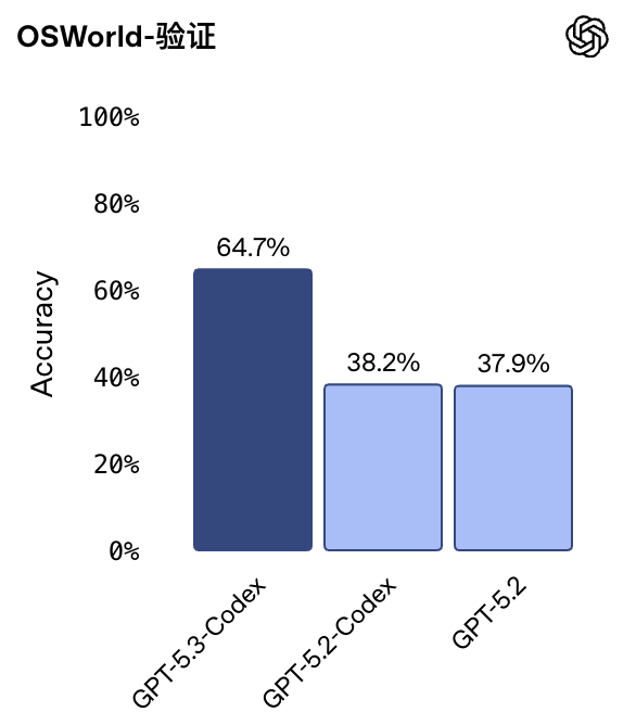 但这次,GPT-5.3-Codex 直接跳涨到了 64.7%!