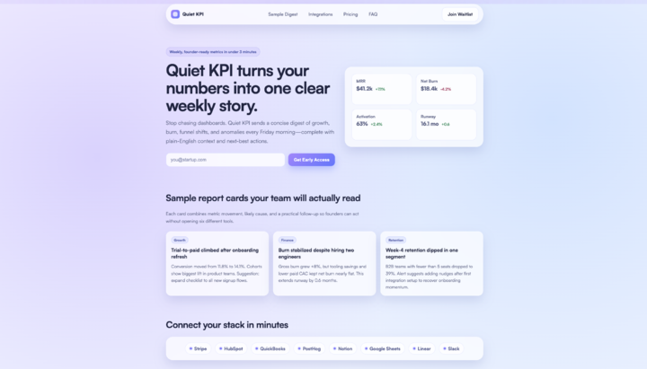 在构建「Quiet KPI」落地页时,它自动把「年度计划」换算成了「打折后的月付价格」,甚至还贴心地自动补充了用户评价轮播——这一切,都不需要你下指令。