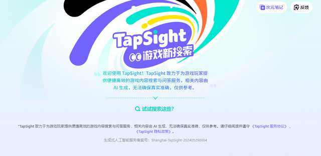 TapTap 开发的垂类 AI 搜索工具”Tap Sight”,是一款基于搜索引擎和现有知识库(包括大量 TapTap 的历史帖子和相关评论)的 AI 游戏信息搜索和汇总工具。根据 Tapsight 自己介绍,这款工具采用了自然语言处理和机器学习技术,旨在为用户提供快速、准确地游戏相关信息。