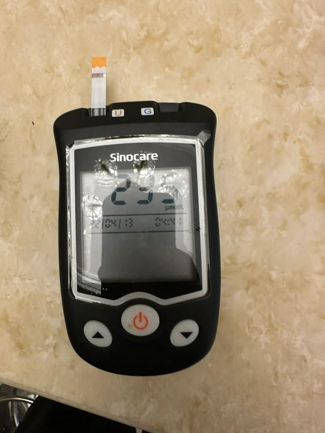 开始控尿酸时,乘舟买了个“血糖/尿酸测试仪”,每半个月监控一次。这是控尿酸人士必备的“神器”,还是他和老家的表哥吃饭时对方推荐的。表哥有痛风,当时正在服用一种据说能降尿酸的益生菌,每天他都会扎一下自己,实时监控尿酸变化。听说有些极端的人,每两三天都要扎一下看看。