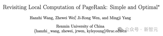 中国人民大学的研究改进了单点 PageRank 问题的计算复杂度,将该问题的计算复杂度优化至理论最优,与该问题计算复杂度的理论下界完全匹配。
