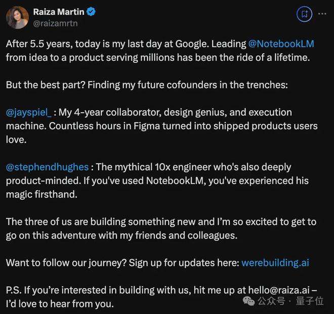 NotebookLM 还会继续更新,但此番出走的 3 位成员,基本就代表了原团队的核心:项目负责人/产品经理+设计师+程序员。