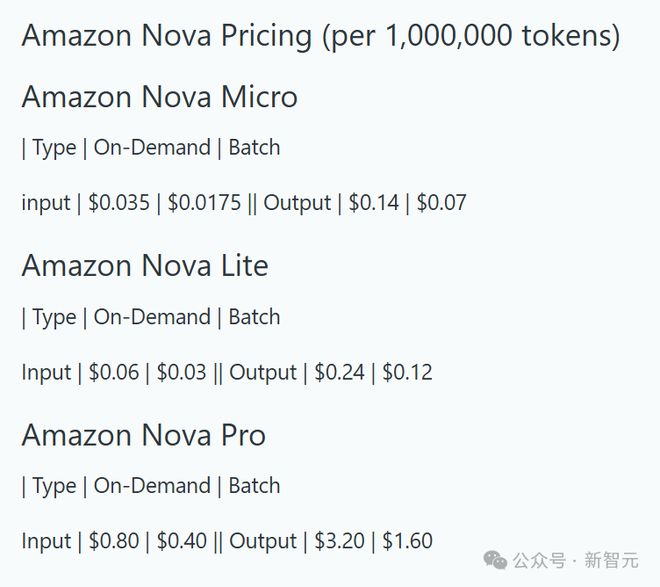 Amazon Nova Micro、Amazon Nova Lite 和 Amazon Nova Pro 的价格,比 Amazon Bedrock 中各自智能类别中性能最佳的模型至少还要便宜了 75%。
