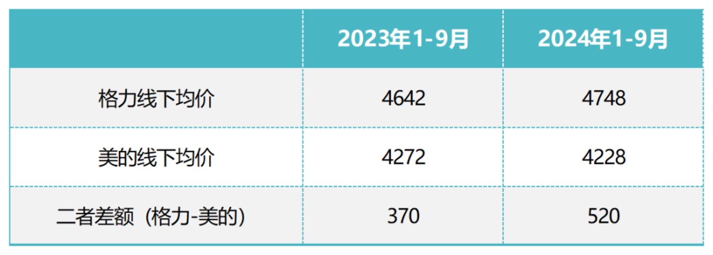 据奥维云网数据,2024 年 1 月-9 月期间,格力的线上均价同比下降 4.29% 至 3440 元,美的同比下滑 3.6% 至 3106 元,格力降幅略微高于美的,但降价后依然比美的均价高。