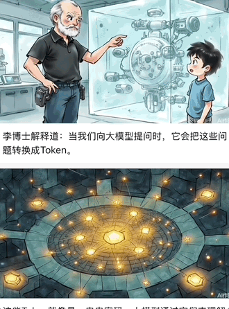 其实,画本也很适合用来给大朋友学习,我们可以输入类似这样的主题——「通俗易懂地科普,大模型的 Token 是什么」。