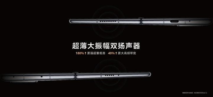 除了苹果,其实目前市面上的中高端手机,基本都有采用 Bass 粉。华为在 2021 年发布的 Mate X2,除了麒麟 9000、徕卡四摄,还有大振幅双扬声器。这对扬声器,就是通过填充 240mg Bass 粉,实现了等效 1.2cc 后腔,不仅能做到对称式双扬,还将低音增加 180%,高频带宽增加 40%。