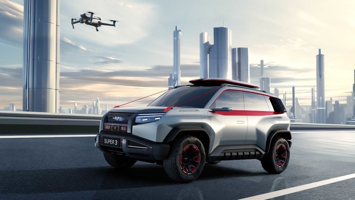 豹 8 我们都认识,一款融合了 DMO 平台、云辇-P 以及华为 ADS 3.0 智驾系统的硬派 SUV,去年就已经上市,起售价 37.98 万元。而「豹 3」,则是概念车 SUPER 3 的量产版本。