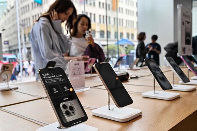 上海一家苹果门店里陈列的 iPhone(法新社)