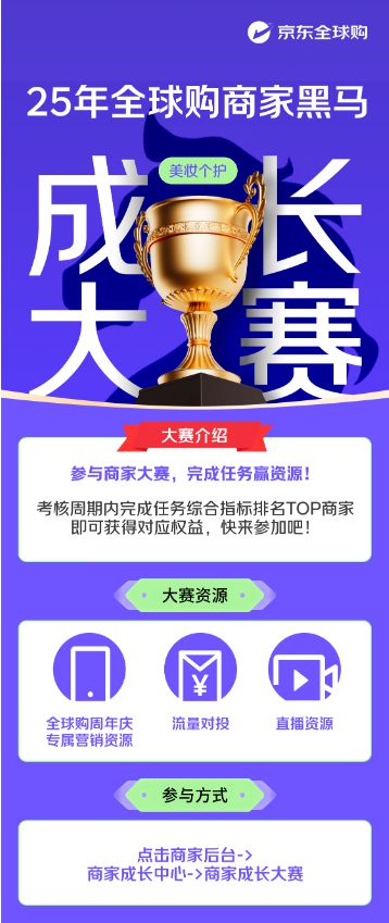 在流量方面,京东全球购将为商家提供千万级流量补贴。包括将推出广告专属激励政策,以更高效地帮助商家通过广告获得优质流量,促进生意增长与广告效率提升。同时,京东全球购还将倾力打造"黑马商家成长大赛",通过为商家搭建阶梯式成长模型、专属陪跑机制、百万激励计划等举措,让新锐商家脱颖而出。