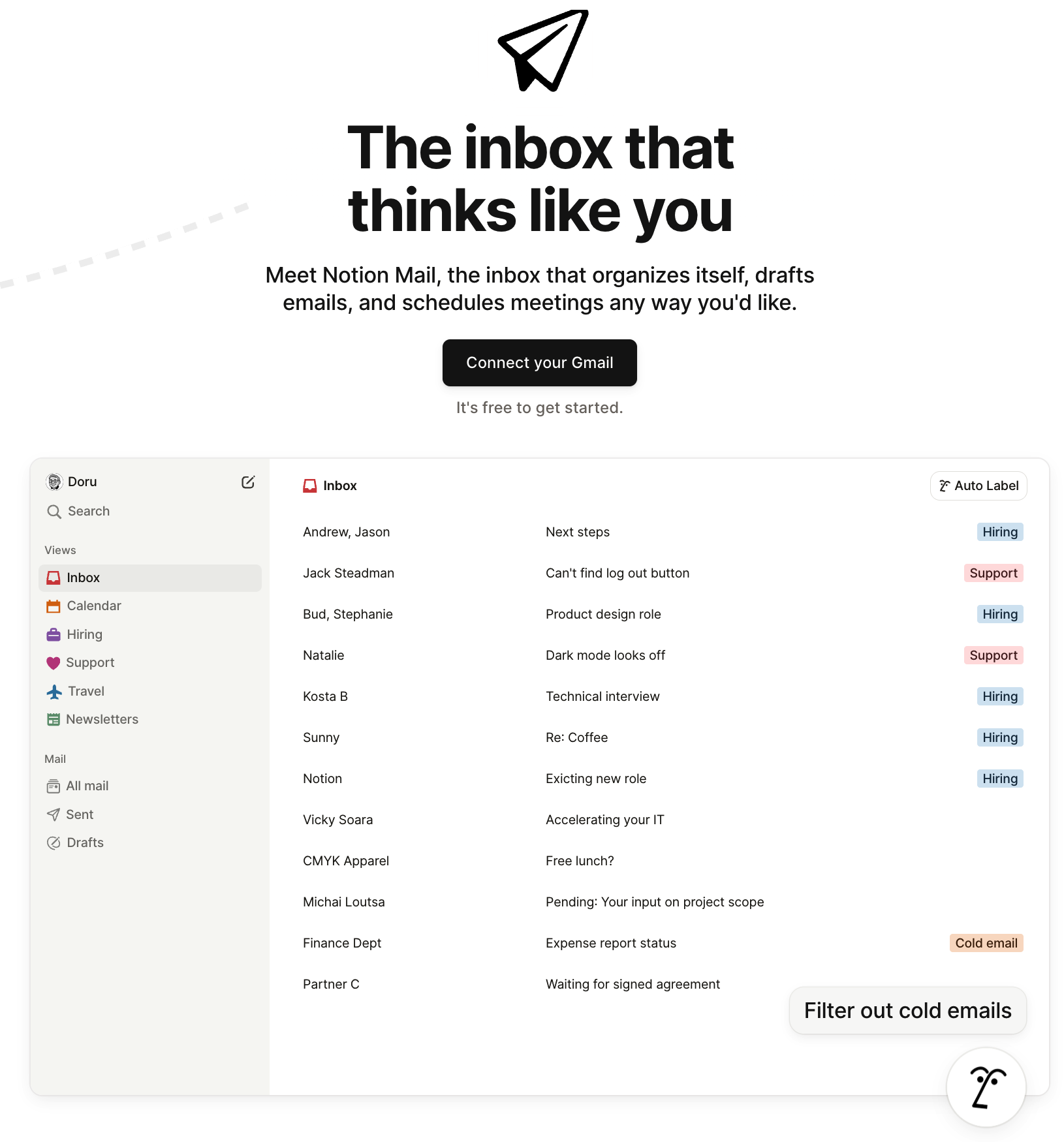 Notion 正式推出电子邮件服务 Notion Mail,首发登陆 macOS 平台,iOS 和 Android 版即将上线。