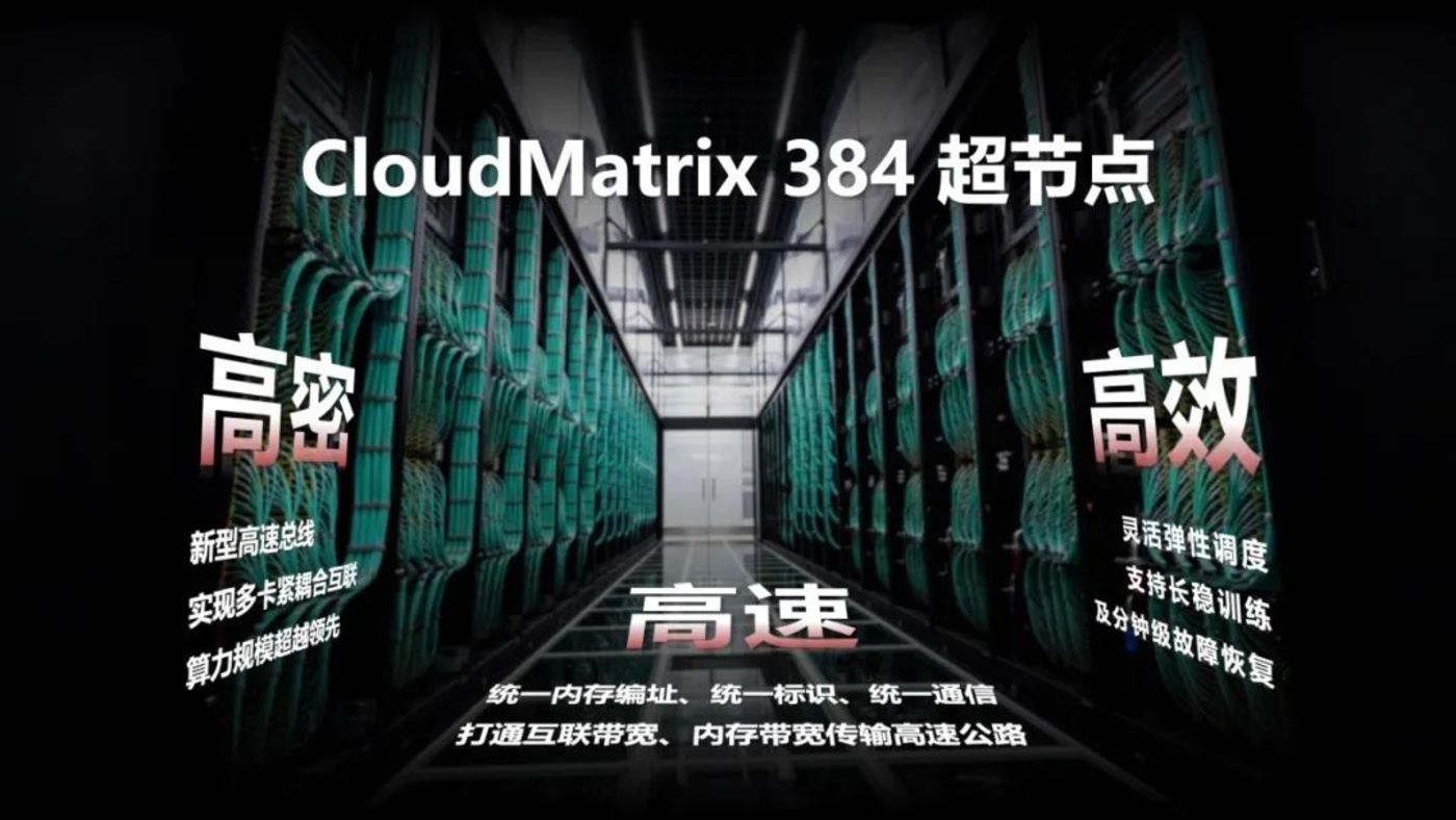近期的华为云生态大会上,最大的亮点也是其公布的 AI 基础设施架构的进展——对标英伟达的 NVL72 超节点,华为云发布了 CloudMatrix 384 超节点。