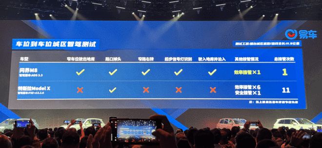 在第三方进行的车位到车位城区智驾测试中,窄车位驶出地库、路口掉头、窄路右转、起步信号灯识别以及驶入地库并泊入。问界 M8 均一次性通过,未接管;对比特斯拉 Model X 四项未通过,出现了接管。