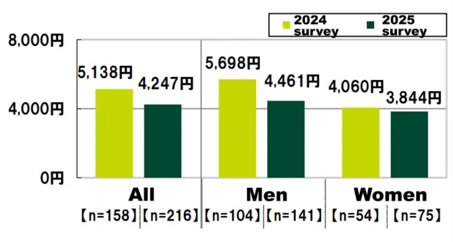 根据调查结果,付费玩抽卡游戏及其他提供内购功能游戏的人数总体上升了 5.8%,从 2024 年的 15.8% 上升至 2025 年的 21.6%。然而,有趣的是,尽管这些结果表明游戏内购的受欢迎程度可能在上升,但平均消费金额实际上却在下降。2024 年,年轻人每月平均在内购上花费约5,138 日元(约合人民币 266 元),而今年的调查结果显示,每月在内购上的平均花费金额为4,247 日元(约合人民币 220 元)。