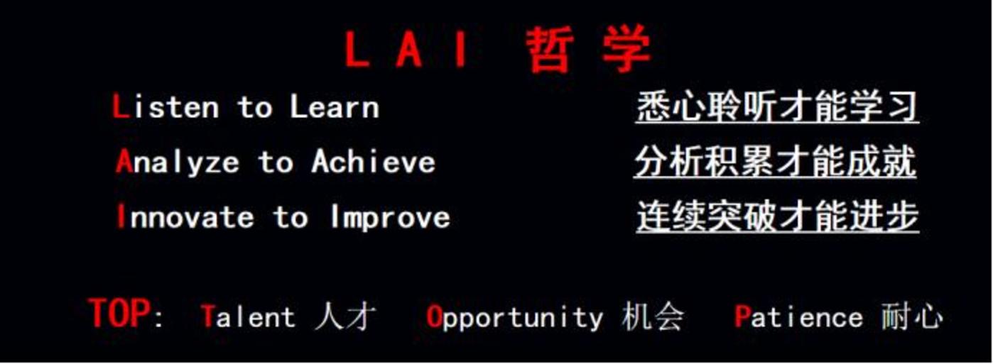 大家都知道我姓赖,“LAI”这个品牌标识不仅是我的姓氏,更代表着三个经营步骤。