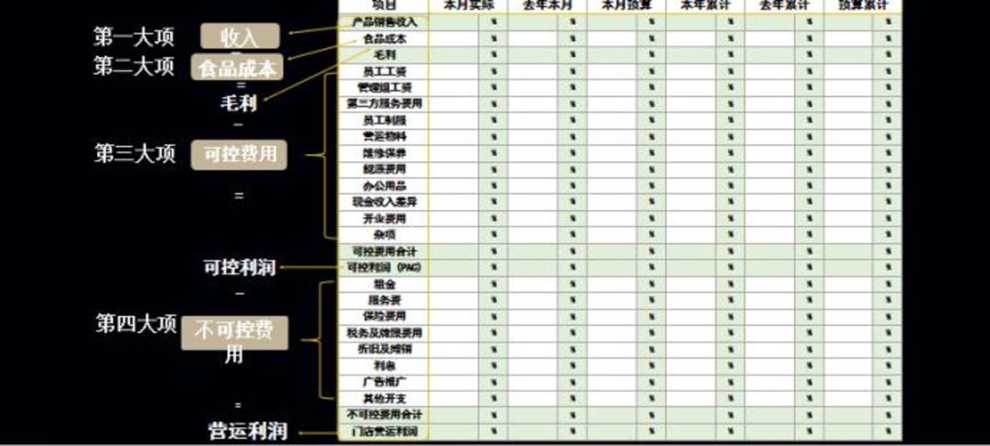 门店的损益表很重要,一定要结构清晰。损益表的结构应清晰、全面且具有可分析性,便于查看。并且要有统一标准,不要每个损益表都进行修改。