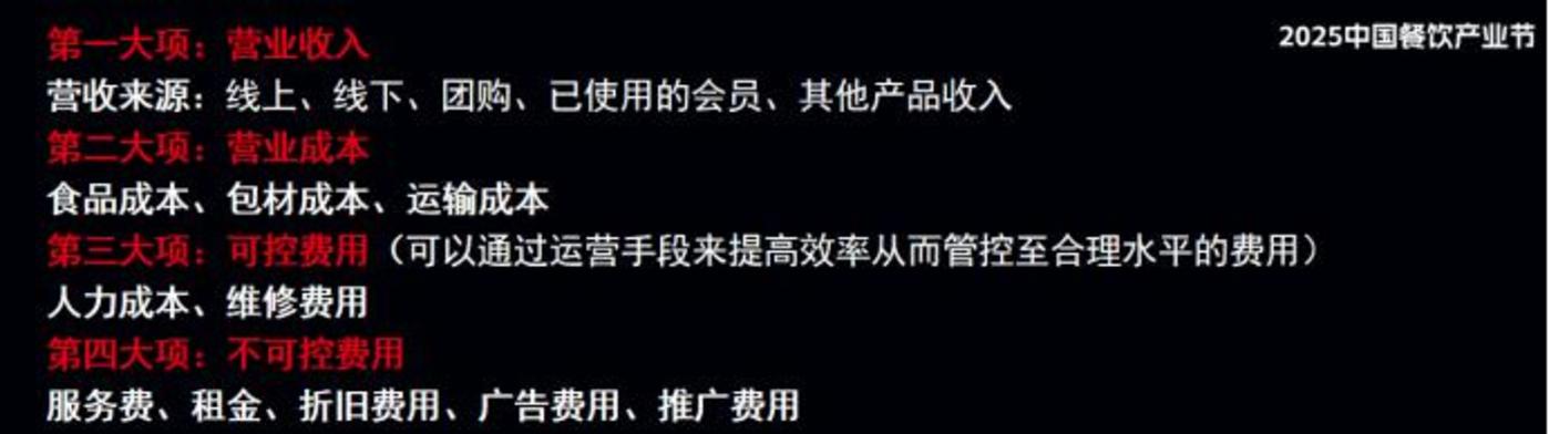 第三大项是可控费用,这类费用可以通过营运手段进行改善。而不可控费用则不在餐厅经理的考核范围内。