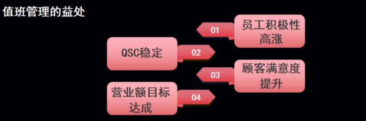 麦当劳的值班管理之所以重要,是因为值班管理可以把餐厅的品质、服务、卫生等提供给顾客,和负责完成门店的营业额目标。