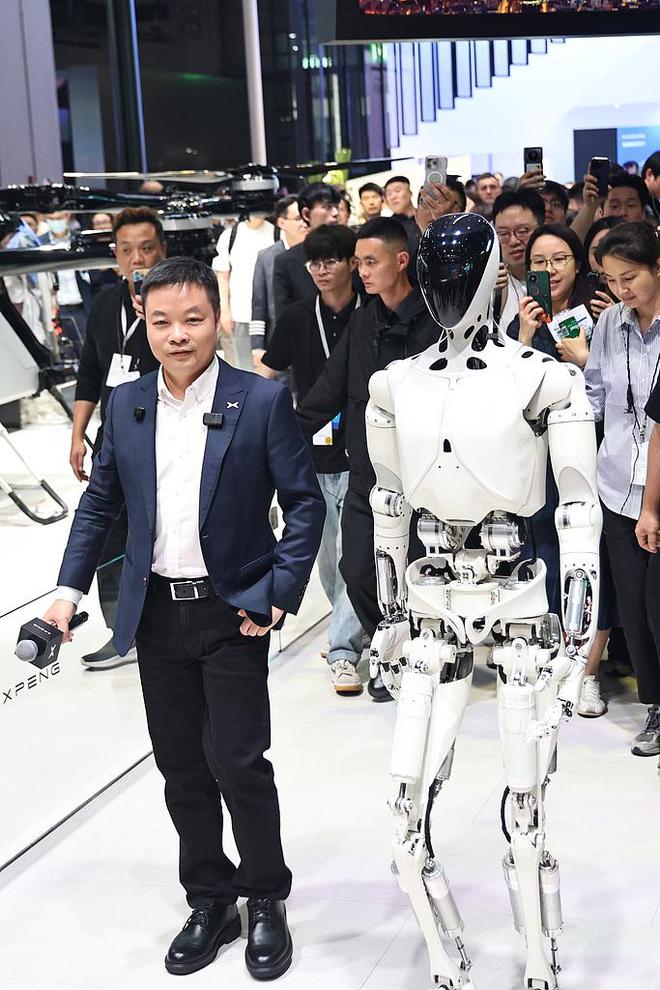 2025 年 4 月 23 日,上海车展,小鹏汽车董事长何小鹏携人形机器人 IRON 亮相。 视觉中国图