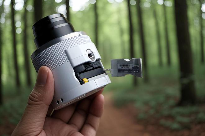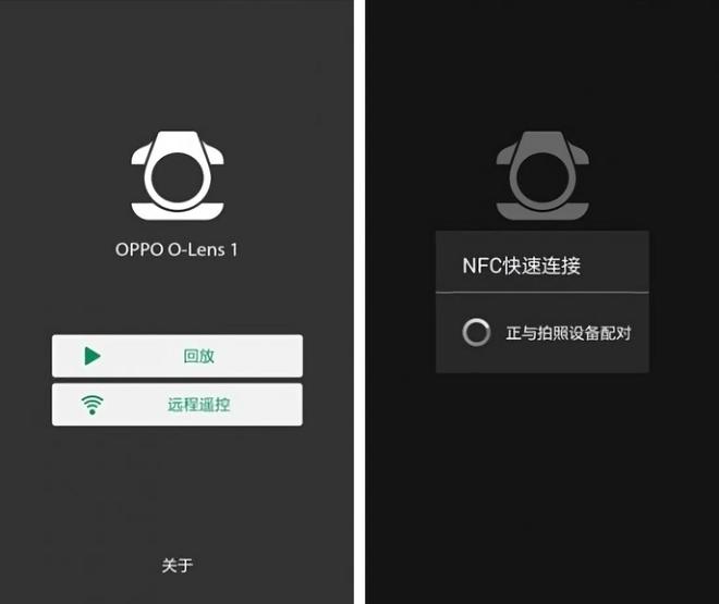 OPPO O-lens1 镜头式相机的开关键与 NFC 功能设计在一侧,用户把镜头和手机同时开启 NFC 功能后,轻轻一碰即可实现快速连接。而在另一侧则设计了电池、存储卡和三脚架接口,该镜头的电池容量为 880mAh,可满足一般用户的续航需求。