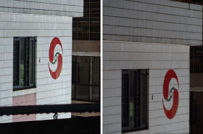 先来看看远景,在同样的位置上拍摄对面楼顶的空调外机,可以看到O-Lens1 在光照充足的情况下,成像效果真挺不错的,以牌空调上的字样和栏杆的清晰度作为参照物的话,甚至能超越有了长焦算法加持的普通旗舰手机。