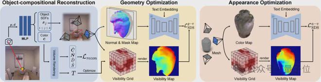DP-Recon 将重建过程分为了几何和外观两个阶段,分别针对物体的形状和纹理进行优化。