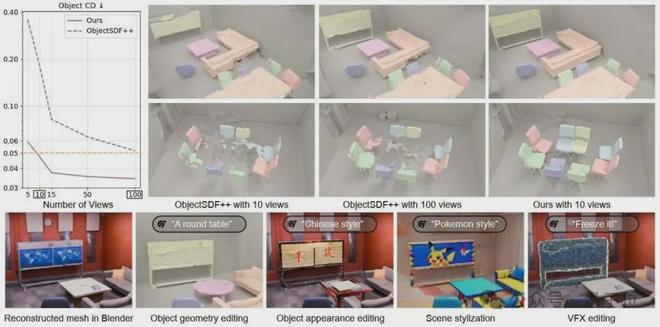 在传统方法中,这几乎是不可能完成的任务,稀少的拍摄视角往往导致模型无法还原被遮挡的区域,生成的场景要么残缺不全,要么细节模糊。更令人困扰的是,传统的重建算法无法解耦场景中的独立物体,重建结果无法交互,严重限制了在具身智能、元宇宙和影视游戏等领域的应用前景。