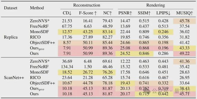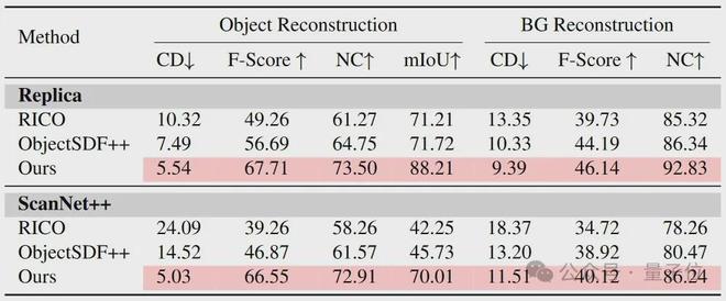 在 Replica 和 ScanNet++ 等权威数据集上的系统性评估表明,DP-Recon 在稀疏视角下的整体场景重建和分解式物体重建两方面都实现了显著突破。