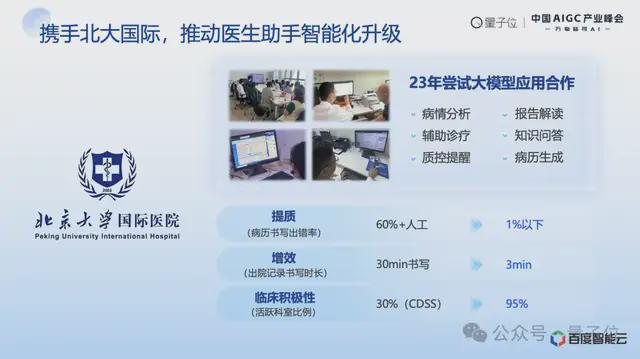我们讲一个案例,北大国际医院是我们非常紧密的合作伙伴,我们在医疗这个领域做了非常深度的应用,包括智能病历的辅助生成,智能辅助推荐,包括医疗知识的简报。