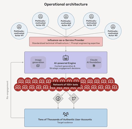 IT 之家 4 月 24 日消息,Anthropic 昨日(4 月 23 日)发布博文,报告称 Claude 等前沿 AI 模型正被恶意行为者滥用,涉及“舆论引导服务”(influence-as-a-service)操作、凭证填充、招聘诈骗及恶意软件开发等活动。